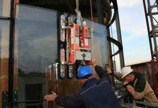 Den er justerbar for forskjellige radier (maks 800 mm). Glasset kan løftes fra både konveks og konkave sider. Enheten har justerbare armer for optimal tilpasning på glasset, som kan løftes og monteres ppå sin rette plass.