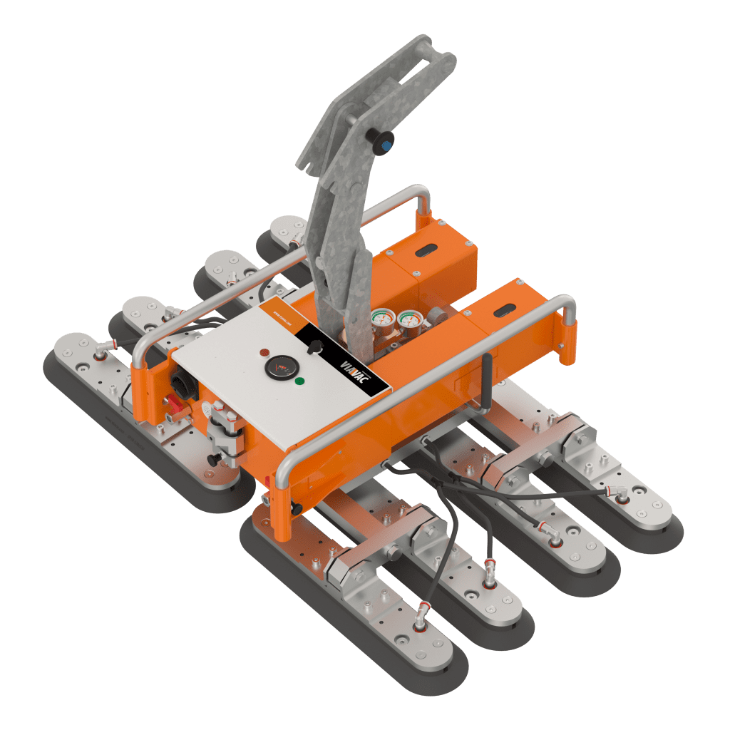 Denne glass vakuumløfteren er unik grunnet sin vippe- og rotasjonsfunksjon. Batteriet lades opp over natten og sørger for en arbeidsdags kontinuerlig drift. Enheten er robust og solid og utstyrt med solide beskyttelsesbraketter.