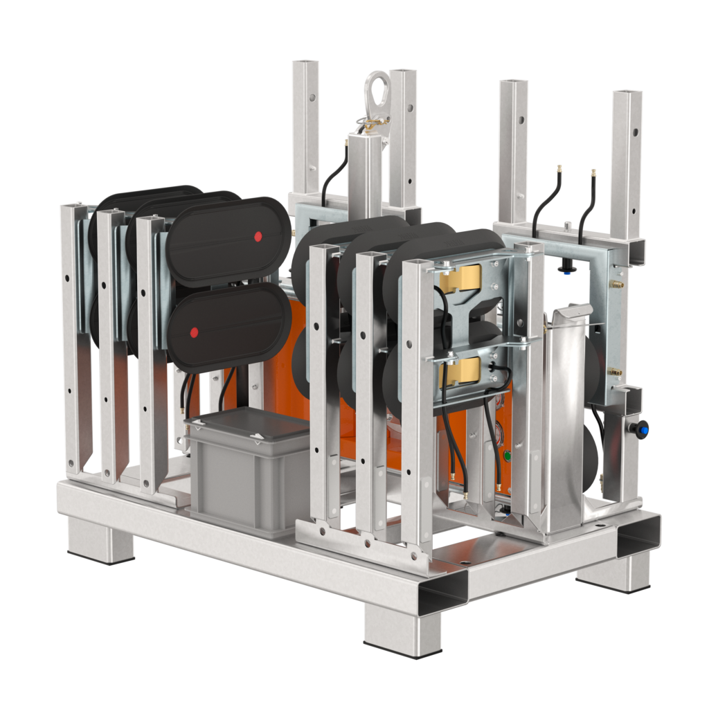 VIAVAC GBXL kan utstyres med en transportramme som gjør det enkelt å oppbevare og transportere glassløfteren uten å påføre skader. Hovedenheten på glassløfteren, inkludert alle reservedeler, kan plasseres på rammen. Transportrammen er utformet slik at den enkelt kan plukkes opp med gaffeltruck. Transportrammens dimensjoner er 1 200 × 1 000 mm.