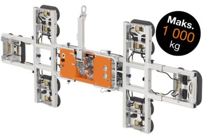 En annen egenskap som gjør at VIAVAC GBXL skiller seg ut, er dens løftekapasitet på hele 1 000 kg. Den laveste vektinnstillingen har en løftekapasitet på 250 kg og kan økes med ekstra sugekopper til en løftekapasitet på opptil 1 000 kg. VIAVAC GBXL kan monteres raskt og enkelt, uten bruk av verktøy. De minste løftedimensjonene på glassløfteren er 1 100 × 400 mm (250 kg), og de største 3 350 × 1 300 mm (1 000 kg).