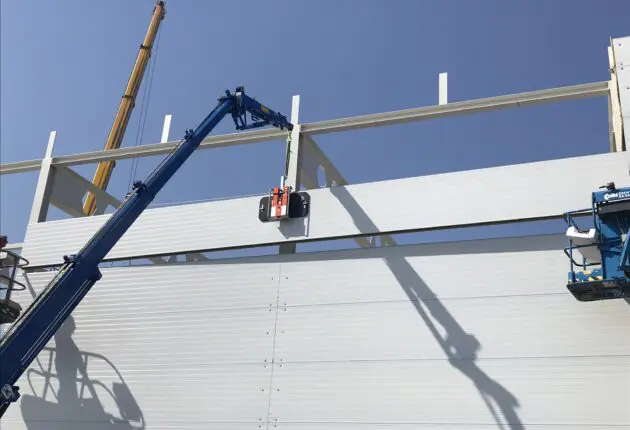 CladBoy Compact er et hendig vakuumløfteverktøy til installasjon av sandwichveggpaneler. Det oppladbare batteriet sørger for at du kan arbeide en hel dag mens ladingen skjer over natten. Enheten er robust, solid og utstyrt med sterke vernehåndtak.