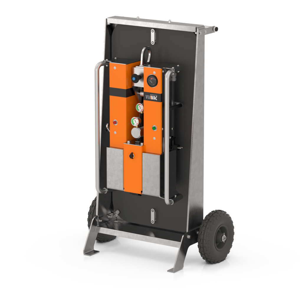 En lydalarm varsler når vakuumnivået er for lavt eller batteriet er i ferd med å bli utladet. Sugekoppen er utstyrt med en utskiftbar tetningsprofil som kan skiftes ut raskt og økonomisk ved skade eller slitasje. Enheten er så kompakt at den lett kan fraktes i bagasjerommet på bilen.