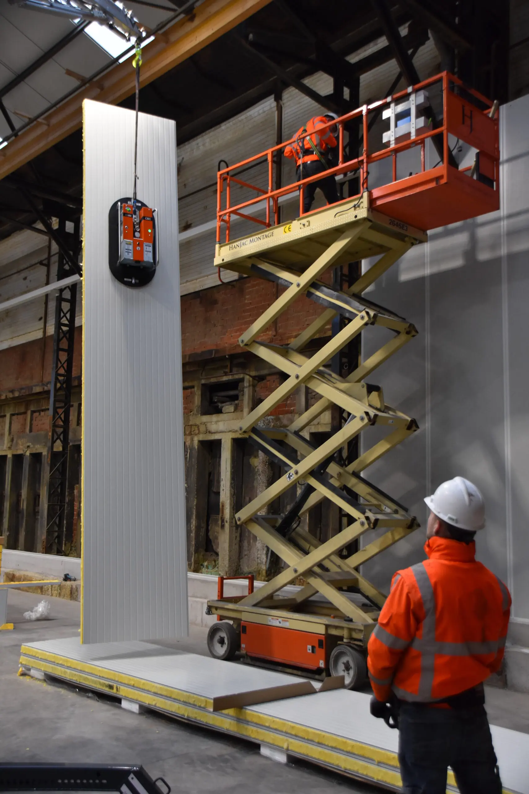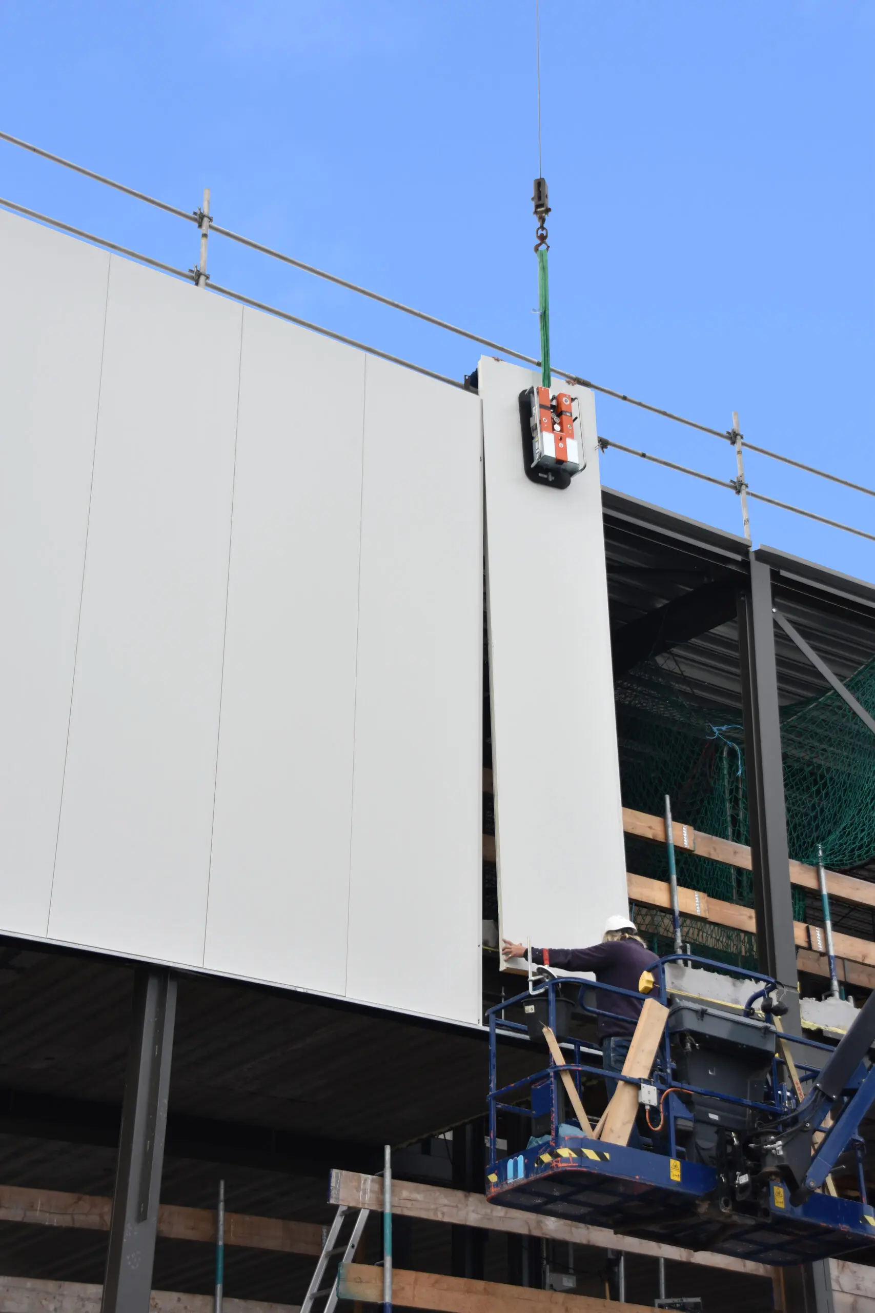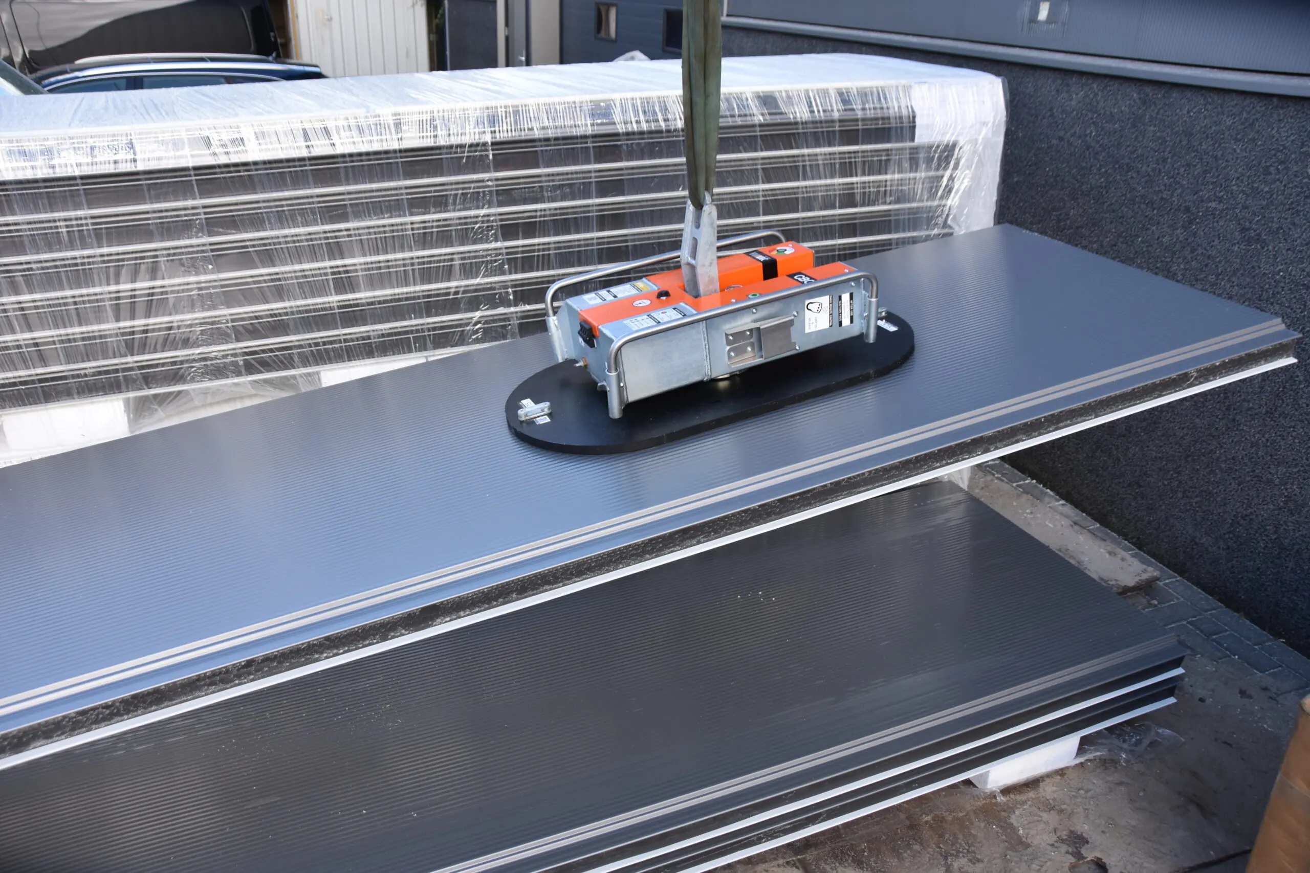 CladBoy Compact er et hendig vakuumløfteverktøy til installasjon av sandwichveggpaneler. Det oppladbare batteriet sørger for at du kan arbeide en hel dag mens ladingen skjer over natten. Enheten er robust, solid og utstyrt med sterke vernehåndtak.