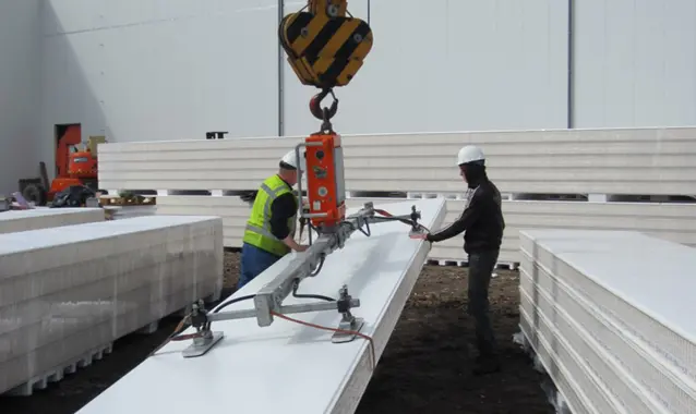 For dette prosjektet ble det stilt svært strenge krav om sikkerhet på byggeplassen og arbeidsforholdene til de ansatte. Bruken av VIAVACs vakuumløfter bidro til å gjøre det mulig å montere de lange og tunge sandwichpanelene på en sikker og effektiv måte.